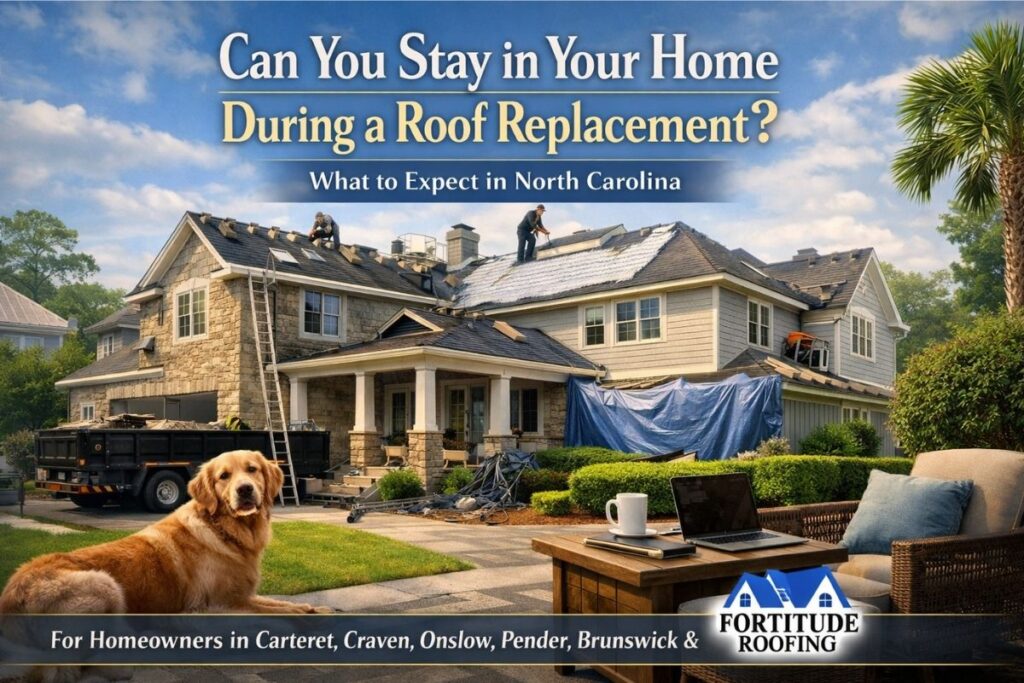If you want project-specific expectations for your home—timeline, staging plan, noise intensity, and special considerations—Fortitude Roofing can walk you through it with a planning-first approach in Carteret, Craven, Onslow, Pender, Brunswick, and New Hanover counties.