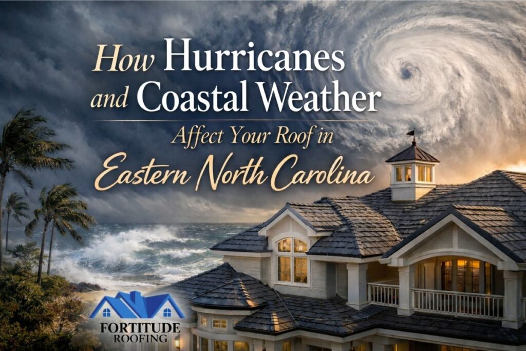 At Fortitude Roofing, we serve coastal and near-coastal communities across Craven, Carteret, Pender, New Hanover, and Brunswick Counties. We see firsthand how hurricanes, tropical storms, salt air, and wind-driven rain affect roofing systems—and why many roofs fail years earlier than their manufacturer ratings suggest.