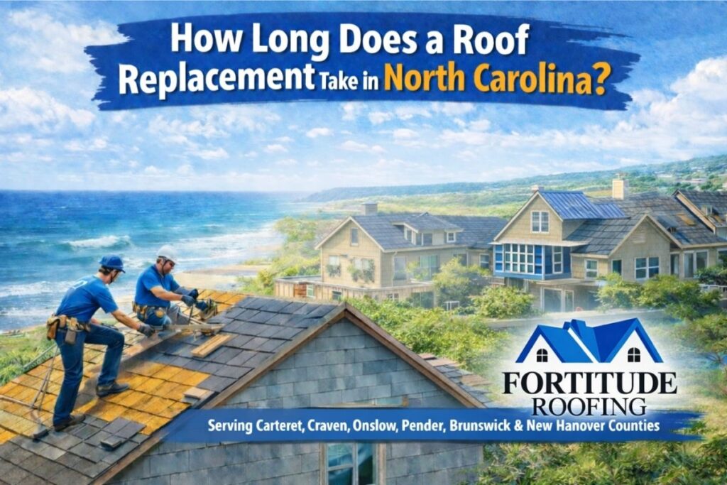 If you want a project-specific timeline for your home in Carteret, Craven, Onslow, Pender, Brunswick, or New Hanover counties, Fortitude Roofing can provide an assessment and a realistic plan—before any decisions are made.