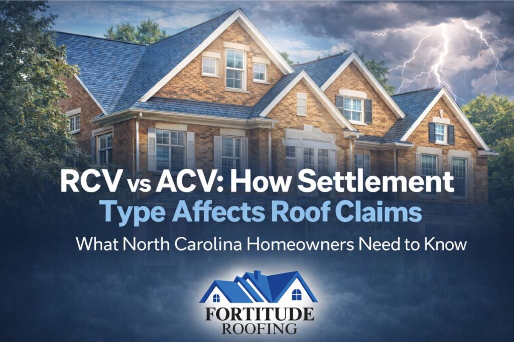 Roof insurance claims in North Carolina are commonly settled using either replacement cost value (RCV) or actual cash value (ACV). The difference between these two settlement types directly affects how much an insurance claim pays—and whether roof repair or replacement is financially practical after storm damage.