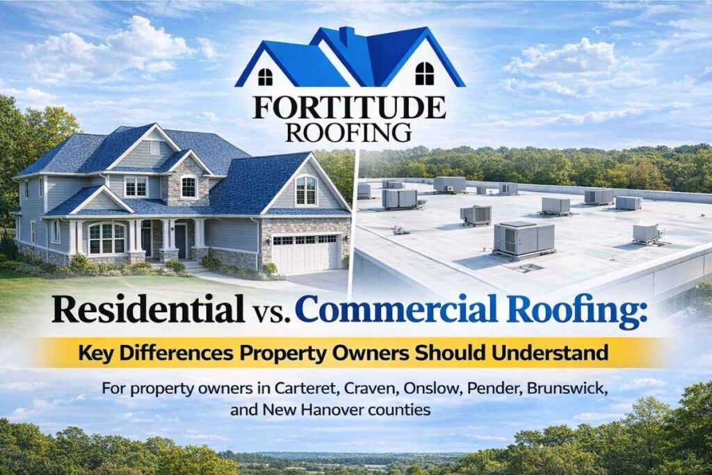 If you own or manage property in Carteret, Craven, Onslow, Pender, Brunswick, or New Hanover counties, Fortitude Roofing can provide a system-specific evaluation—residential or commercial—focused on clarity, documented findings, and long-term performance.