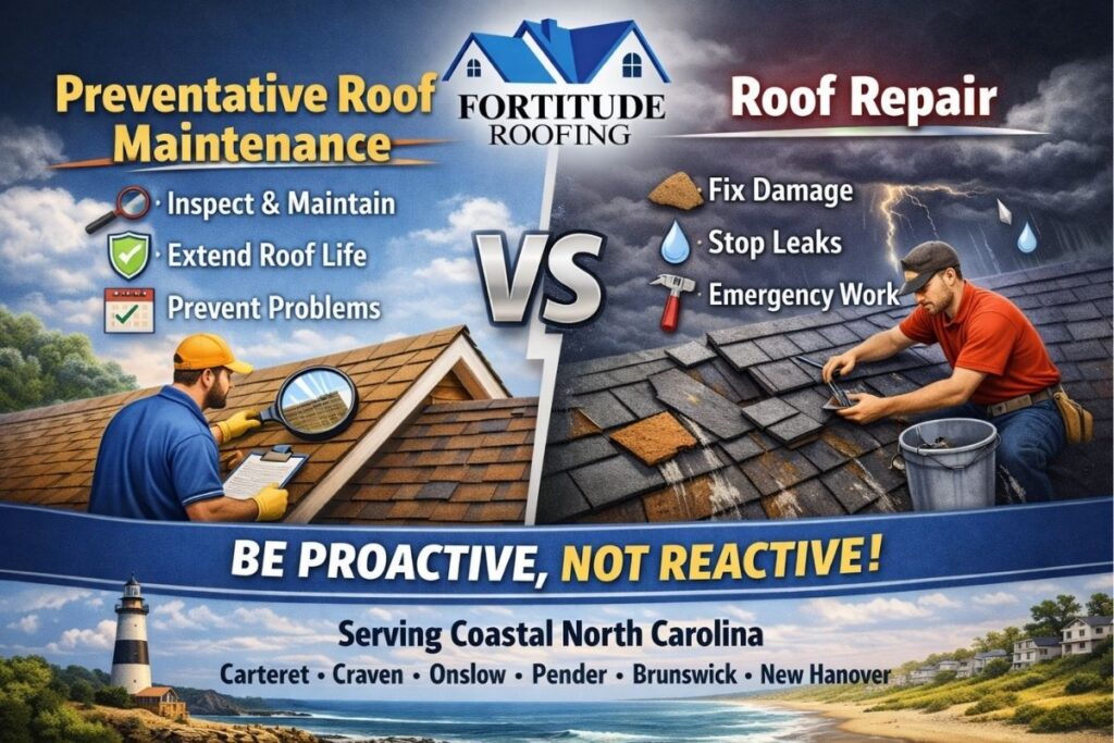 This guide explains the difference in plain terms, what each approach typically includes, and how coastal North Carolina homeowners can use maintenance to avoid preventable repairs.