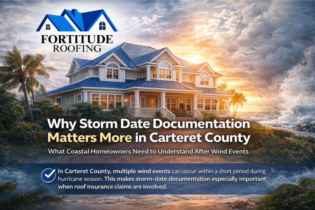 In Carteret County, multiple wind events can occur within a short period during hurricane season. This makes storm-date documentation especially important when roof insurance claims are involved.